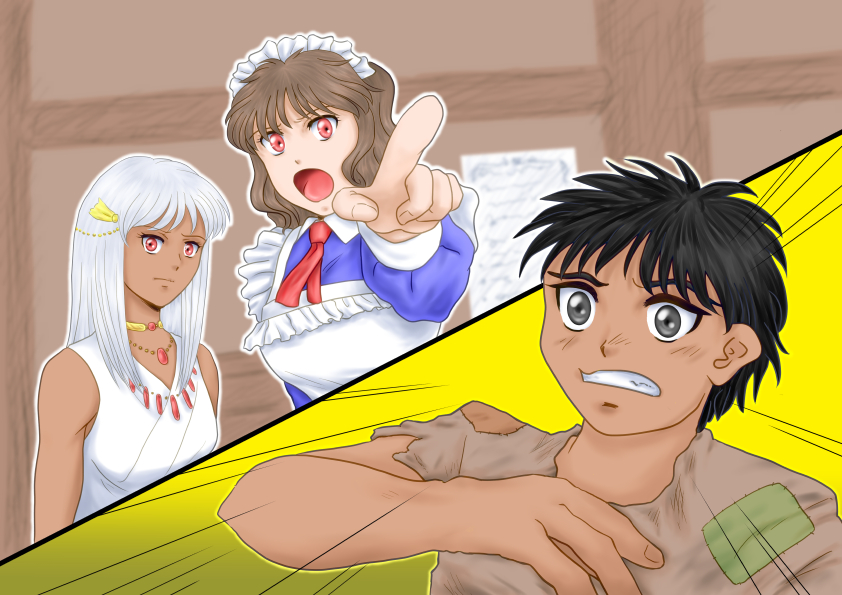 | ★★★ 子供達は明日になったら答を聞きに来ると言って、去った。 その前日、つまり最初の答を聞きに来た当日の夜である。 王都『パルテノン』冒険者ギルド二階。ジュディ・バーガー(PC0032)は子供達へどう回答するかに悩んだ末に、現実逃避すべく暴飲暴食にふけっていた。 「がっでむ……もうどうにでもなぁ〜れ(キラリン♪)」 暴飲暴食と自暴自棄の境界は非常に曖昧である、と言わんが為ではないだろうが、まるで魔女っ娘のふりをするしょぼーんな中年妖精の様に変身ポーズを決めた感じでジュディはジョッキのビールを浴びるように飲みまくっていた。……何か説明に奇妙なフレーズが紛れ込んでいる気がしないでもないが、彼女のやけくそさが十分の一でも伝わってくれれば満足です。 「チルドレン・ジーズ・デイズ・アー・プレコシャス、最近の子供はませてるネ! 可愛げ要素が足りない気がするケド!」 酒のつまみのスモークチーズ黒胡椒付きを一塊、口の中に放り込んで咀嚼。 追って、ビールを喉に流し込む。 「……でも、まあ相手は子供ダシ……大らかな気持ちデ、大目に見なきゃいけナイネ」 酔客の眼がしばし静かに真面目な光を宿した。 子供達が提示した三つの質問にどう答えるべきなのか、ちょっと再び向き合ってみる。 ジュディの酔った脳内に『ジュディのなぜなに質問コーナー!?』のテーマ音楽が流れ始める。 ※質問1:海の水は何故しょっぱいか? 「フム、良い質問ですネ」 脳内でジュディのパペット人形が教鞭を手に、大きな木に掲げられた質問の看板を読み上げた。 「それは沢山の塩分が溶け込んでいるカラデス。 ところで食塩には、大きく二つの生産法がありマス。 それは岩塩採掘と、海水からの抽出。 塩田を作ったり、煮詰めたり、効率的に抽出する手間は大変だけど、海水なら無尽蔵デス。 海水より塩分が濃い湖も存在するらしいネ」 最後は蛇足っぽかったな、と思いつつ、次の質問へ。 ※質問2:なぜ人を殺してはいけないのか? 「OH、ナイスパンチが来たネ」 パペット・ジュディは不敵な笑みを浮かべた。人形なのに。 「基本的に、殺人は悪いコトだから駄目! もちろん例外的な扱いもあるヨ。 たとえば戦争中とか、正当防衛ならセーフデス」 ここまで答えて、子供達に「何で戦争だと人を殺してもいいの?」と訊かれたらどうしようかとちょっと悩む。 酔った頭で悩んでも答が出なかったので、次の質問へ。 ※質問3:赤ちゃんはどうやって作るのか? 「はい、これは即アウト!」 巨大なバッテン棒を突きつける。 「まだ子供は知らなくてもKO、じゃないOKネ。 理由は早すぎるカラ。 もちろん文句ナッシング! 聞く耳は持たないヨ!」 そんな事を言っていると、まだ彼女が幼少の頃、似たような質問で養父母を困らせてしまった記憶が蘇ってきた。 (そういえば、教会の神父様にも同じ事を……あうち、やっちまッタネ) ジュディは投げつけた手榴弾が、自分の方へ跳ね返ってきた感覚に捉われた。 なにせジュディには、いわゆる出生の秘密があるはずだから。……さぞや心労を強いてしまった事だろう。 (ああ! 本当にゴメンなさい、グランパとグランマ! 心から愛しテル――) 脳内パペット劇場が『制作・著作:いいテレ』のテロップを流して終わった時、ジュディはジョッキの表面に濡れた瞳を映していた。 「やっぱり三番目の質問は答えられそうもないワ。……これは無理ネ。なんだか凄いストレスを感じちゃう……」 そして彼女の真面目な面を映していたはずの鏡像がグニャリと歪む。 その眼は見事に座っていた。 「こんな時は酒に限ル……さあ飲みまくるゾ! イピカイエー!」 再び始まった強烈な酒宴に、周囲のテーブルが巻き込まれを警戒して酒杯を持ったまま距離を取る。 そのおかげか、巻き込まれたのは一人ですんだ。 「スティーブったら久しぶりじゃナイ! 今日も白衣を着てるんだネ♪」 その場に居合わせたのが不幸だった、狂科研の劇山冠(ジュウ・シャンガン)が白衣の首根っこを掴まれて、強制的にジュディのテーブルにマージェス、合流。 持っていた小ジョッキにあふれるほど酒を注がれた劇が、憐れみを誘う眼でジュディを見上げるも――。 「え、なんだっテ? 大丈夫、全然酔ってないシ……ひっく♪ ところでサ、いつから三つ子になったんだっケ? WAHAHAHAHAHAHAッ!!」 大怪獣ゴ▽ラは放射能火炎の代わりに酒臭い息を吐き、酒宴はこの夜の遅くまで永く続いたのだった。 ……酔い潰れたジュディは、翌日の子供達への回答を欠席する羽目となったのである。 ★★★ 次の日。午前中。 朝方にさぁーと降った雨のおかげで随分過ごしやすくなった日中。 マニフィカ・ストラサローネ(PC0034)は図書館で調べ物をしている。 『オトギイズム』世界に名高き王立パルテノン大図書館は膨大な蔵書群を抱える、まさに知の殿堂である。 近年では『羅李朋学園』から協力を得たことにより、更なる文庫の充実を遂げたと言われる。 そのとある閲覧室の片隅では、なにやら勉